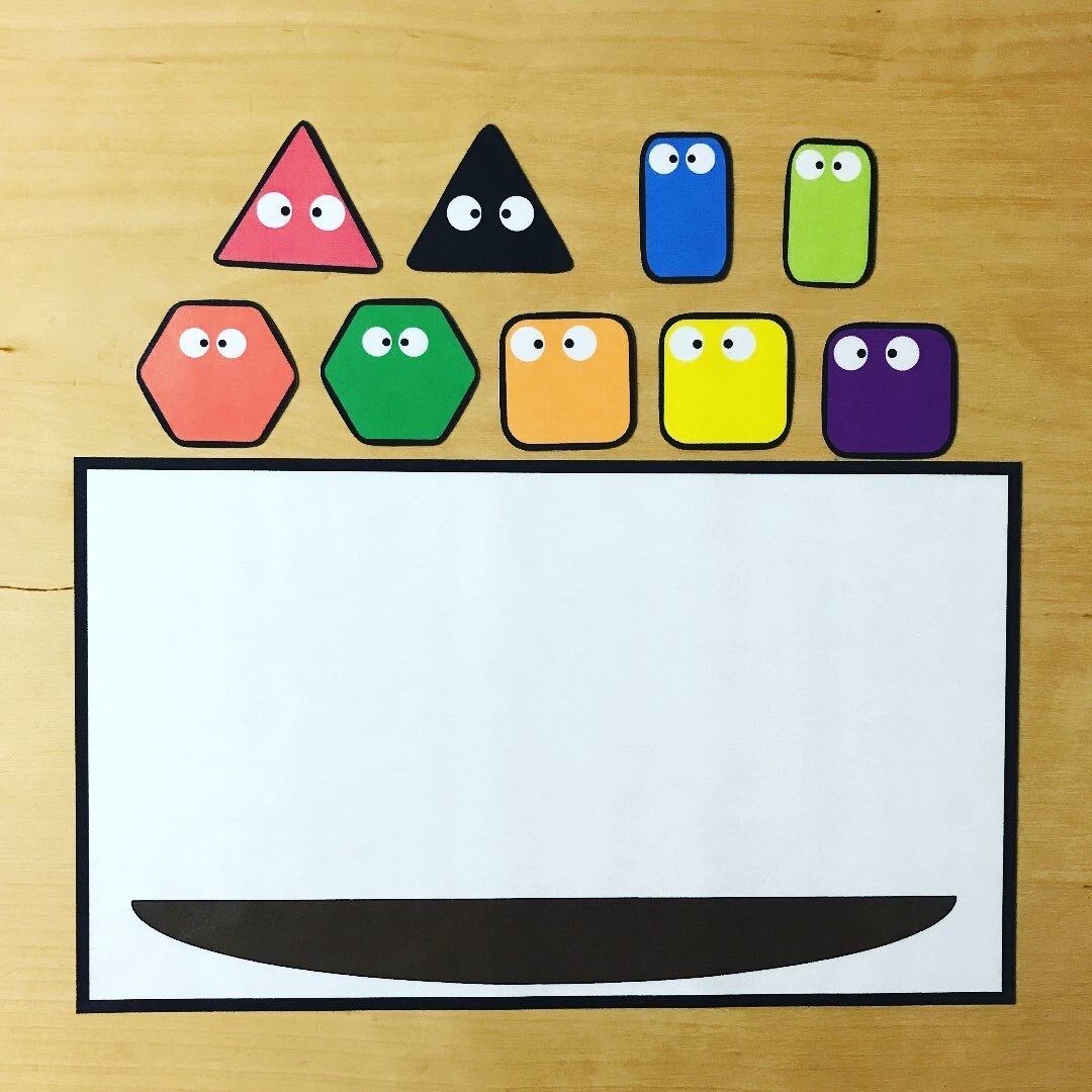 形と色のキャラクターの素材は、マグネットを貼ってます。マグネットボードで使用ください。