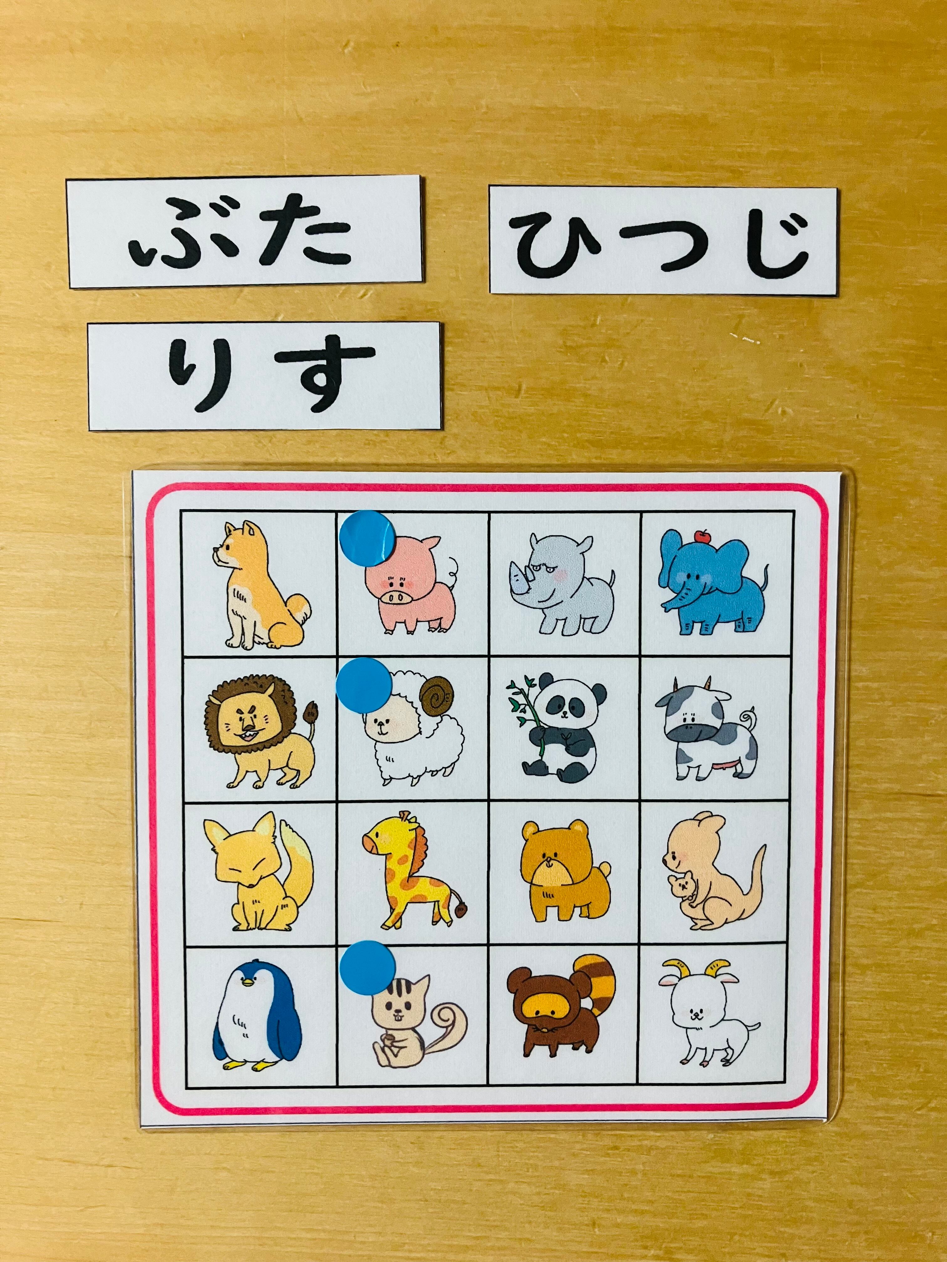 ビンゴゲーム 動物 ひらがなとマッチングのお勉強