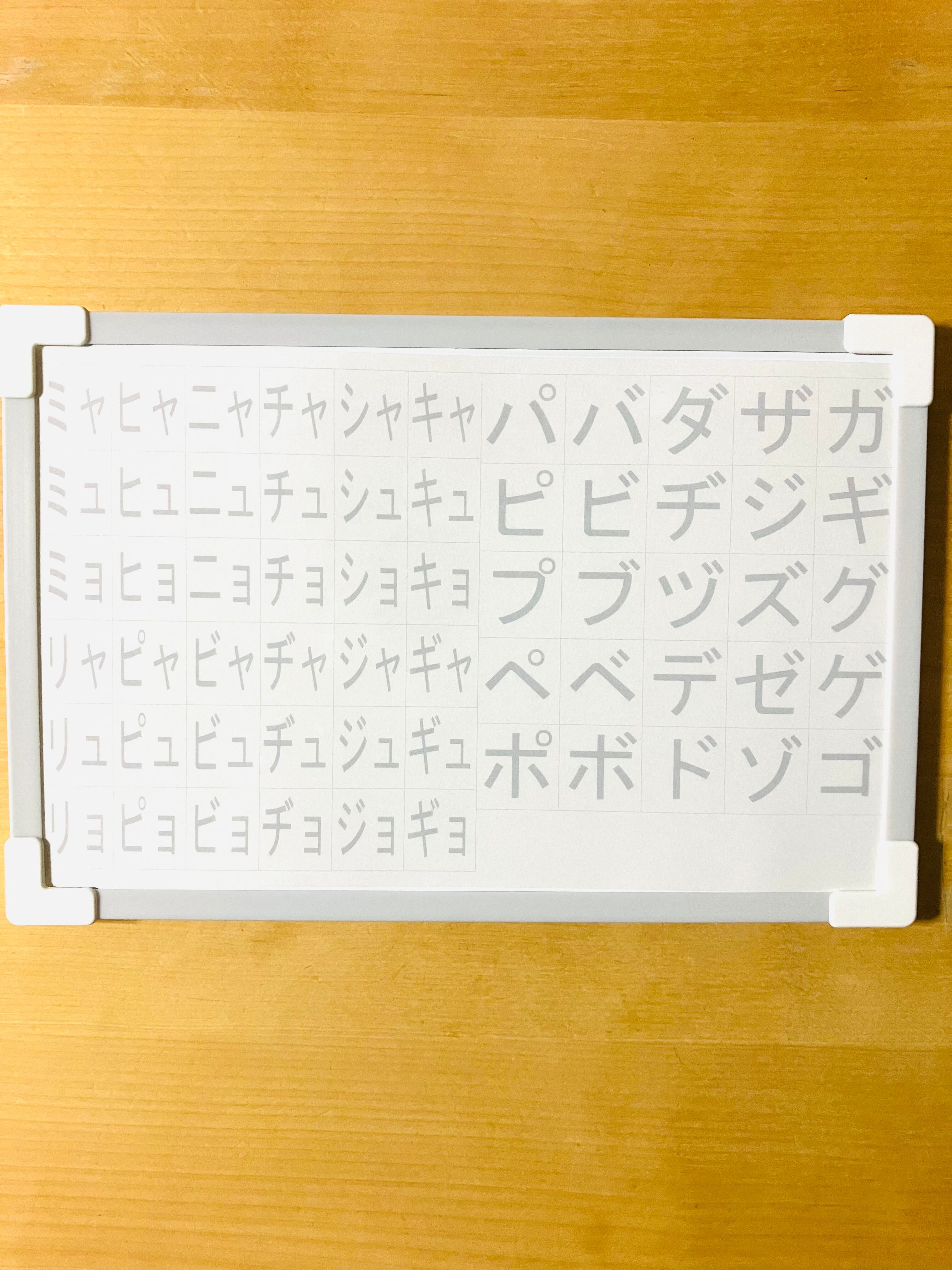 その上にマグネットの付いた、カタカナカードマグネットを載せています。